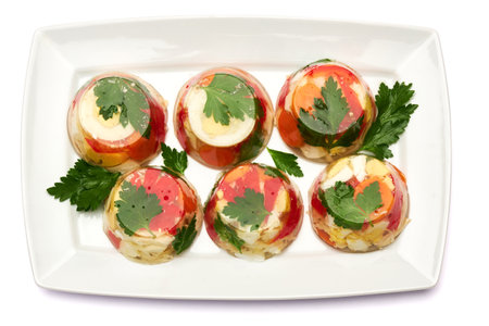Dish of aspic isolated on white background
