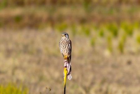 Common kestrel eating a mouse - Falco tinnunculus - in natural habitat