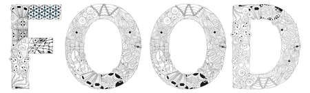 Various fruits and vegetables creatively arranged to spell out the word food, showing natures bounty in a unique and visually appealing way.
