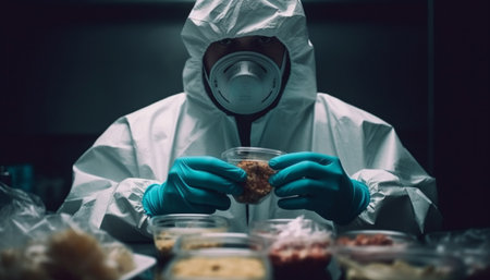 The scientist in the laboratory analyzes medical samples with expertise generated by artificial intelligence