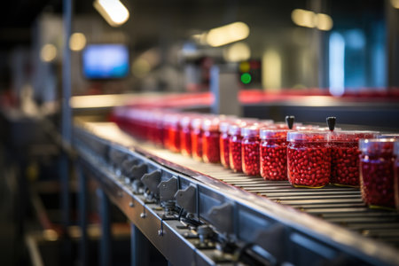 Automated Canning Process: Illustrating modern food production, a photo captures the automated canning process on an industrial conveyor, showcasing the seamless preparation