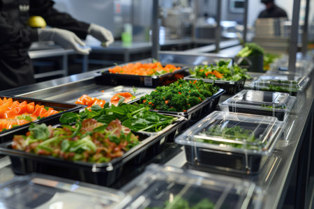 Efficient ai-driven food production line enhances meal preparation in a commercial kitchen