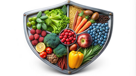 Isolated on white, a composition featuring a variety of organic food items. Generative AI