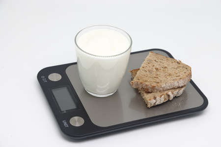A glass of thick kefir on the scales. Weight loss, diet and weight control. Still life with healthy food and scales. Health food. The concept of a healthy lifestyle. weight control during self isolation