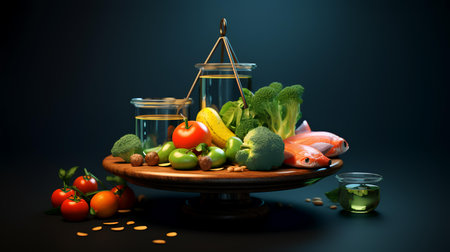 Ai generated diet plan and weight loss photo, proper nutrition, vegetables and fruits for diet plan and healthy lifestyle, weight loss pills and supplements, fitness routine