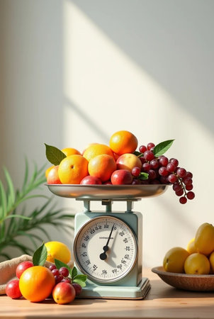 Diet bathroom weighing scales design made from fruits and vegetables