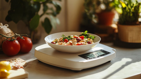 Kitchen Scale With Bowl of Vegetables