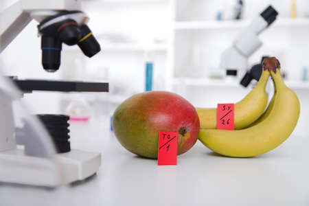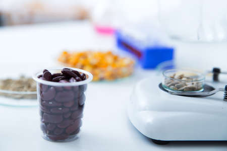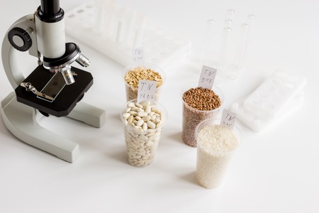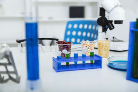 Chemical Laboratory of the Food supply . Food in laboratory, dna modify .GMO Genetically modified food in lab