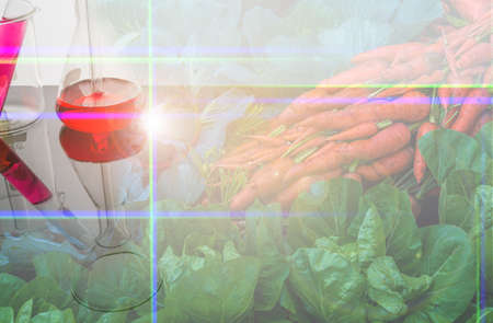Chemical Laboratory of the Food supply . Food in laboratory, dna modify . Toning image.
