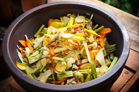 vegetables scraps ready for composting in a kitchen bowl, created with generative ai