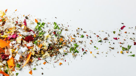 Ultra realistic mixed food waste on white background for environmental awareness