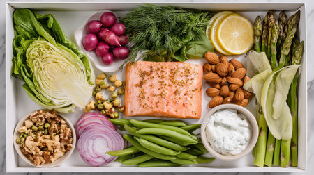 variety of healthy foods such as lean proteins, vegetables and healthy fats. generative ai