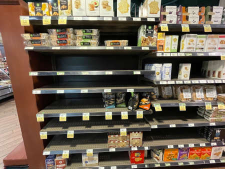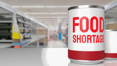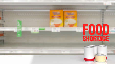 food shortage red text on empty shelf image 3d rendering