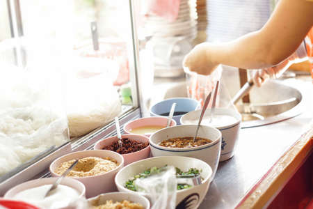 Chef cooking noodle at noodle shop - Thailand street food