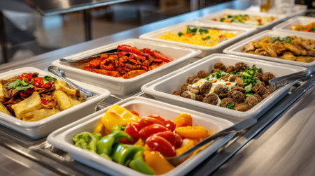 steaming hot dishes displayed on food truck counter, created with generative ai