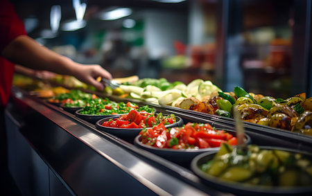 Color Explosion: Restaurant displays varied and inviting salads bar, generative AI