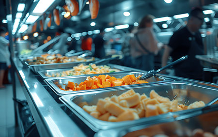 Catering buffet in a modern hotel restaurant. Shallow depth of field