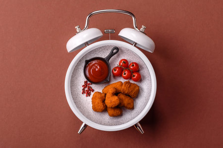 Chicken nuggets, crispy fried food with sauce. Fast food concept