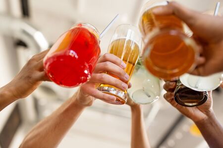 friends clinking glasses at bar or restaurant