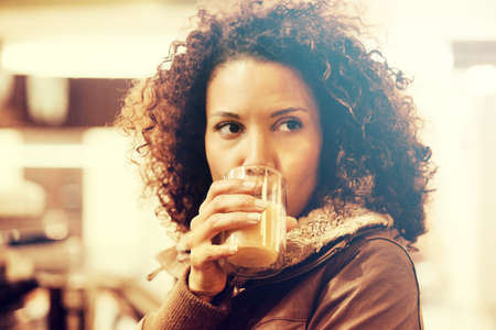 Beautiful young woman having drink in the bar.