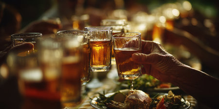 Clinking glasses with alcohol and toasting, party.