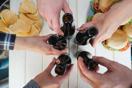 close up.a group of successful young men drinking beer.