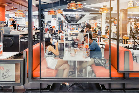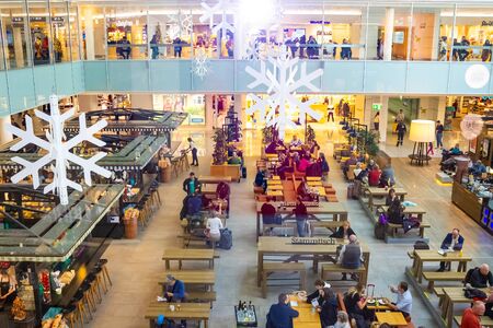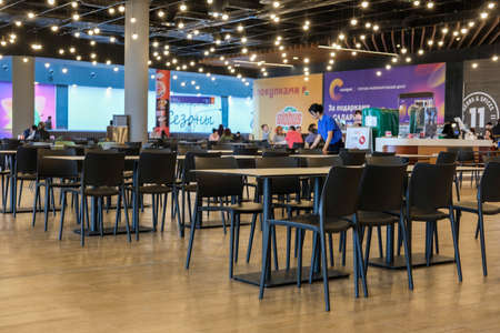Moscow, Russia - May, 20, 2019: image of the interior of the cafe in the shopping center Salaris in Moscow