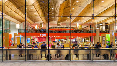 Brisbane, Australia - September 26, 2016: People dining in food court in Myer Centre, the largest food court, in Brisbane CBD.