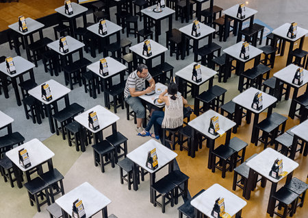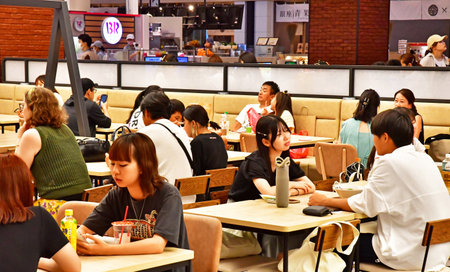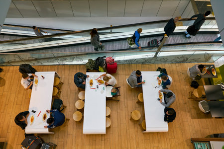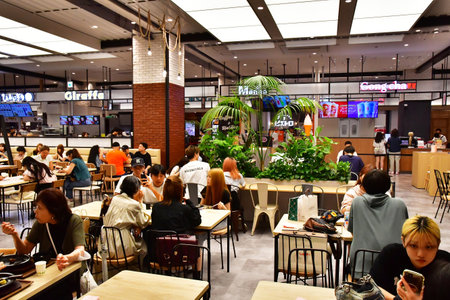 Tokyo, Japan, October 29, 2023: Customers enjoying meals at a casual dining area in a food court