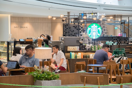 Singapore - Dec 31, 20120: Starbucks coffee shop located inside the Jewal Changi Airport in Singapore. Starbucks is the largest coffeehouse company in the world.