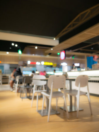 Blurred background food center in shopping mall and university school.