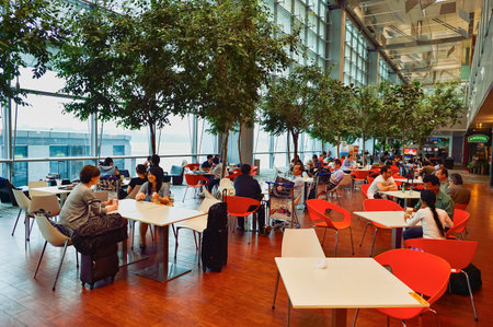 DUSSELDORF, GERMANY - CIRCA SEPTEMBER, 2018: people eat at restaurant in Dusseldorf airport.
