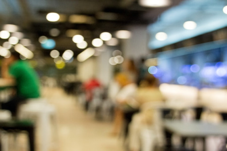 Defocused or blurred photo of food court for background.