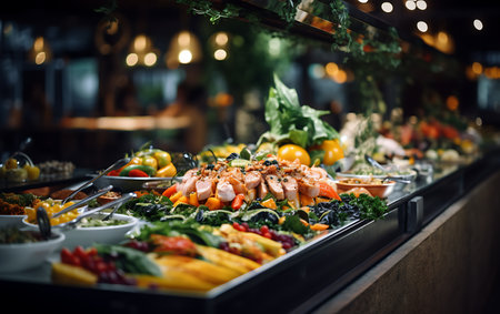 catering buffet food indoor in luxury restaurant with meat and vegetables