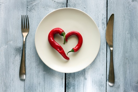 St Valentine's day greeting card with plate, knife, fork and heart