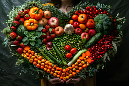 heart shape form by various vegetables and fruits