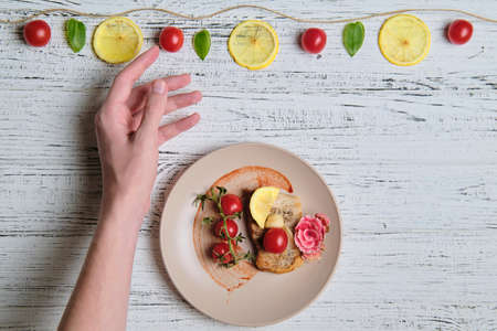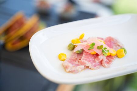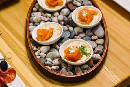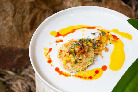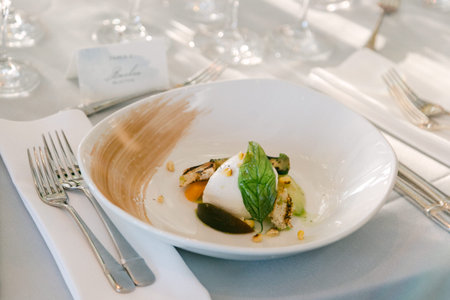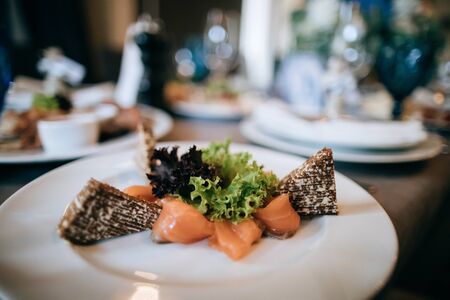The food in the restaurant. Food styling and restaurant meal serving. Gourmet restaurant menu concept. Creative stylist restaurant