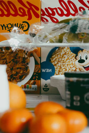 A busy supermarket aisle filled with a variety of products neatly arranged on shelves. The image captures the essence of retail shopping and consumerism, ideal for themes related to commerce and daily life.