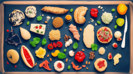 Comprehensive Flat Lay of Diverse Raw Ingredients for Culinary Preparation