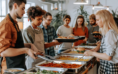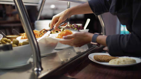 Crowd of people enjoying buffet food meal dining Food Options Eating Concept in hotel buffet