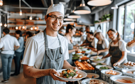 Efficient ai-driven food production line enhances meal preparation in a commercial kitchen