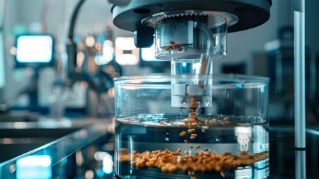 A specialized machine precisely dispensing feed pellets into the water minimizing waste and optimizing food distribution