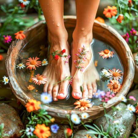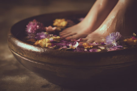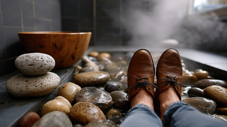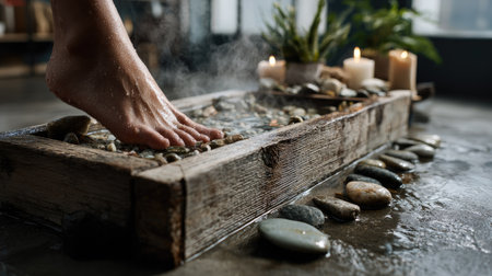 Indulge in a Relaxing Foot Bath with Smooth Pebbles Perfect for an Ultimate Spa Treatment Experience