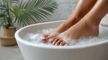 Warm foam foot bath. Foot Spa treatments at home