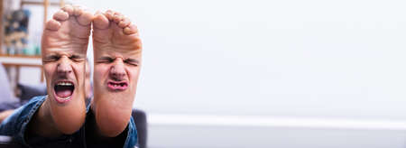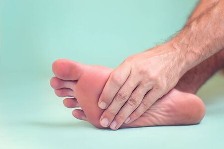 person with foot pain and nerve inflammation, feet and soles heel pain in adults and treatment injury of feet disease.