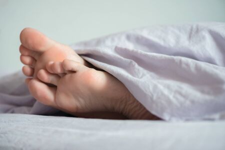 Close-up Of A Person's Feet Under The Blanket On Bed