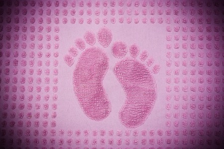 Closeup foot of baby with newborn ankle tag on bed in hospital textured background