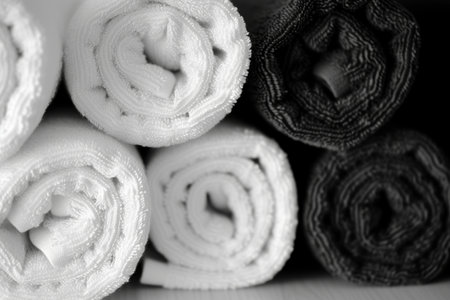 A stacked arrangement of soft towels in elegant shades of gray and white on a harmonious background, perfect for home d