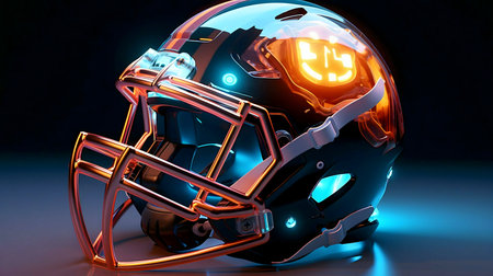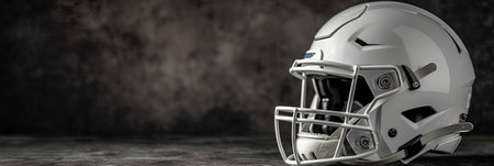 Outfit for an athlete, metal helmet for American football, close-up, copy space