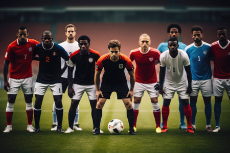 Diverse women's soccer team standing together on a sunny outdoor pitch, confident and ready to play, celebrating teamwork, empowerment and athleticism across generations and cultures